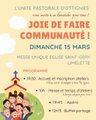- L'église Saint Géry est ouverte en semaine de 10h00 à 18h00. - L'église Saint Joseph est ouverte le dimanche de 09h30 à 10h30, le mardi, mercredi, samedi de 10h00 à 11h00 , le jeudi de 15h00 à16h00 , le mardi et jeudi de 18h00 à 19h00. - 15/03 En UP Dimanche pour tous Messe à St Géry à10h00 et animations - 4/03 20h00 salle St Géry : UP Ottignies propose : Aujourd'hui l'espérance conférence - 18/2 Mercredi des Cendres : célébration à 18h00 à Saint Géry pour St Joseph & St Géry - 15/2 Journée mondiale des malades Célébration à 09h30 pour St Joseph - 15/2 Journée mondiale des malades Célébration à 11h00 pour St Géry - 12/2 20h00 St Joseph : Conseil de fabrique - 1/2 Entrée en catéchuménat : joie pour toute la communauté de St Joseph | ||