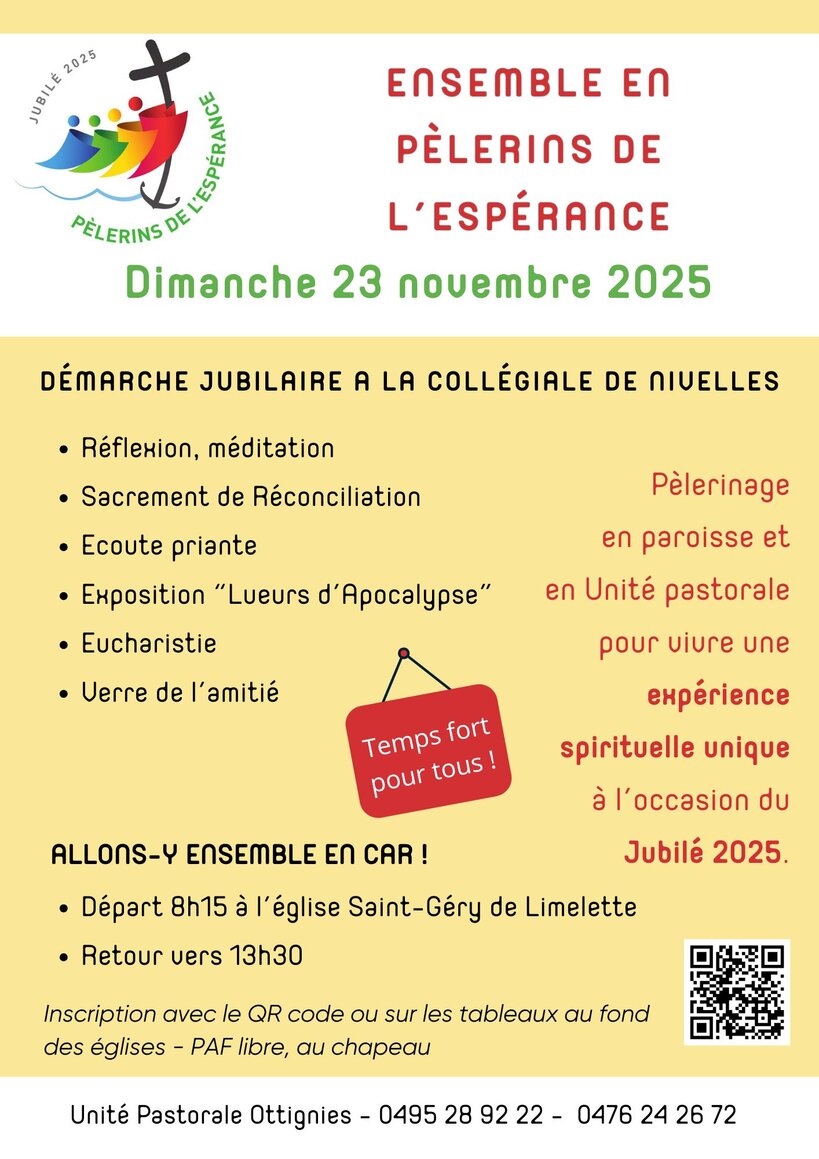 ![]() - Une animation sera proposée aux enfants mais on demande aux familles intéressées de nous signaler leurs présences et leurs âges - il n’y a pas de marche en soi, tout se passe à l’intérieur de la Collégiale - Pas de messe le dimanche 23 novembre dans les églises de notre UP - Une messe est prévue le Sa 22 novembre à 18h00 à l'église St Géry | ||||||